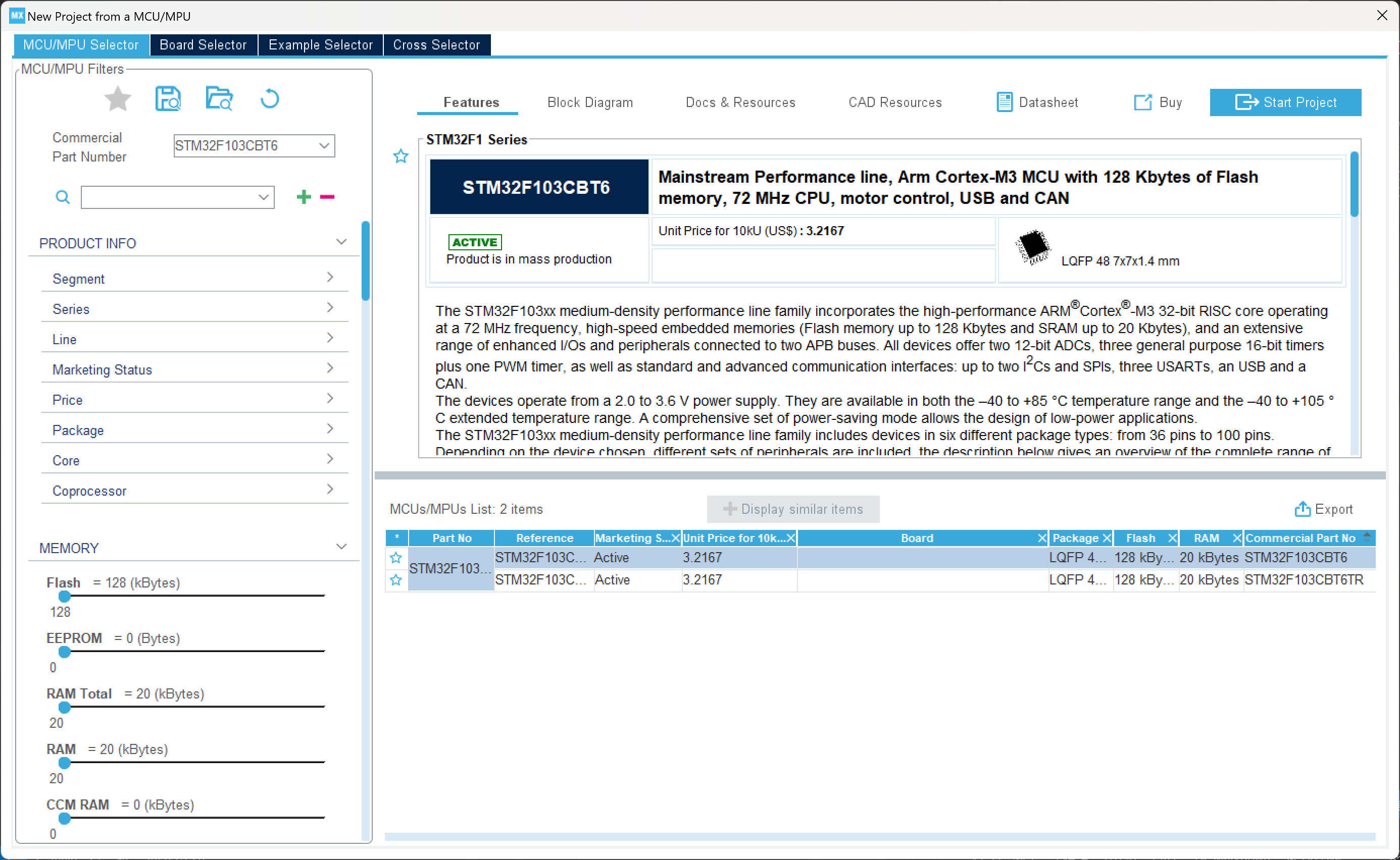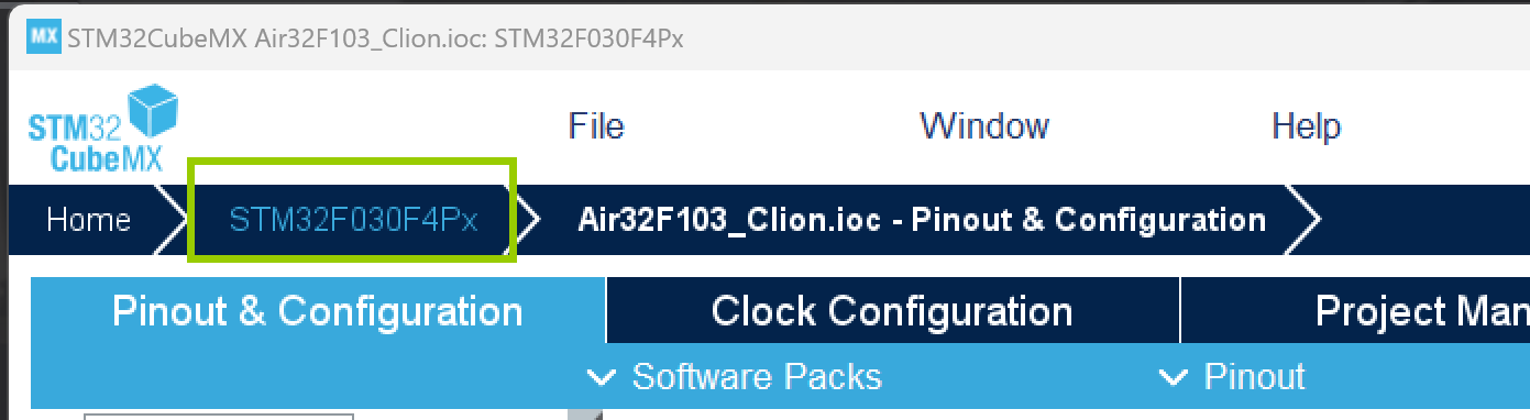 默认采用了STM32F030F4Px,点击顶上面包屑导航的STM32F030F4P6修改为STM32F103CBTx