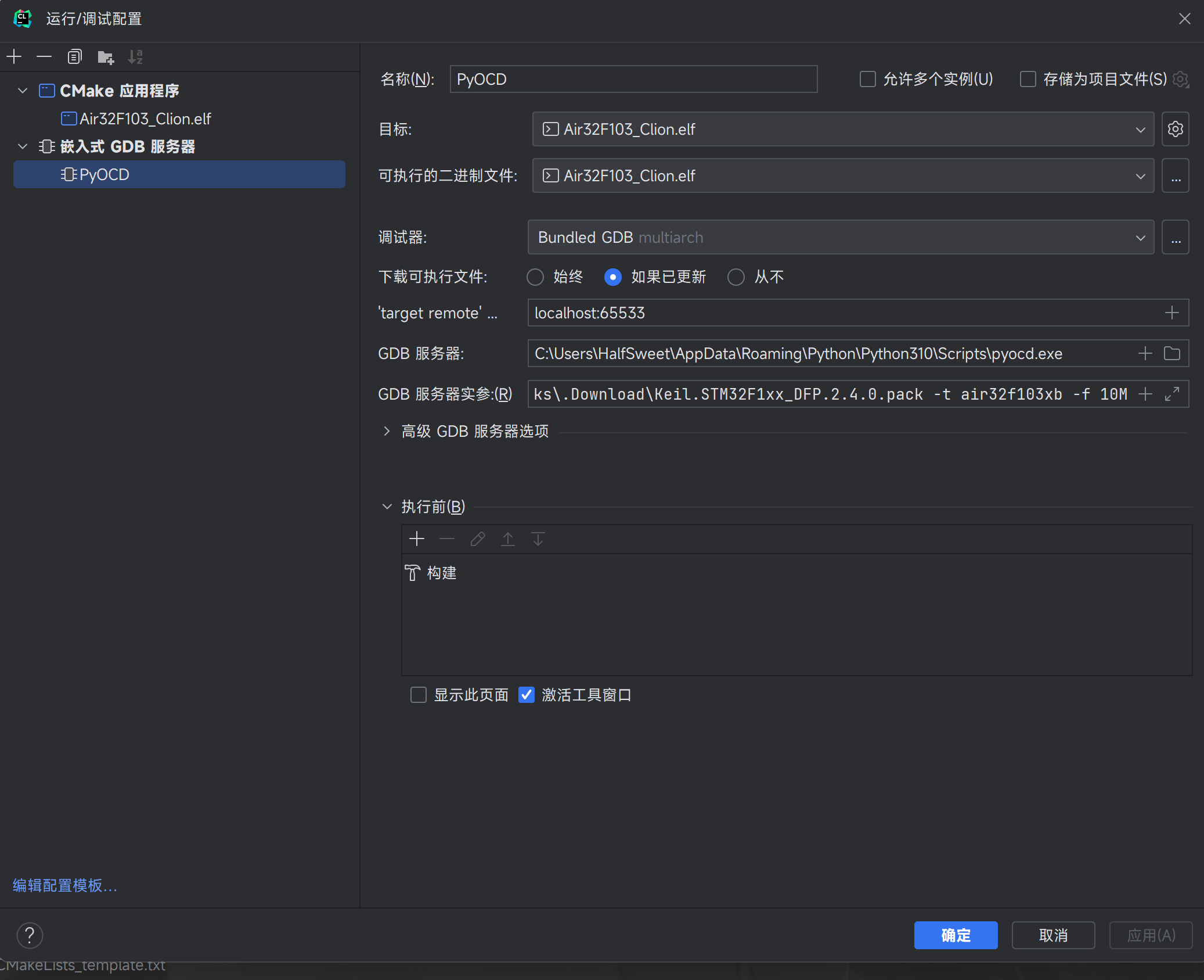 可执行文件中,修改为pyOCD的路径,如果找不到可以用which pyocd命令查看。