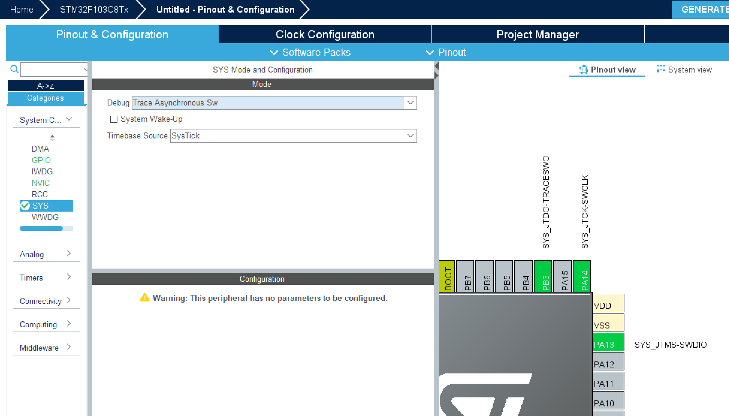 在STM32微处理器的编程中,我们只需要在STM32CubeMX软件中打开异步跟踪模式即可使用SWO进行输出调试,相比与串口的打印,使用SWO明显效率更高,占用的引脚更少。