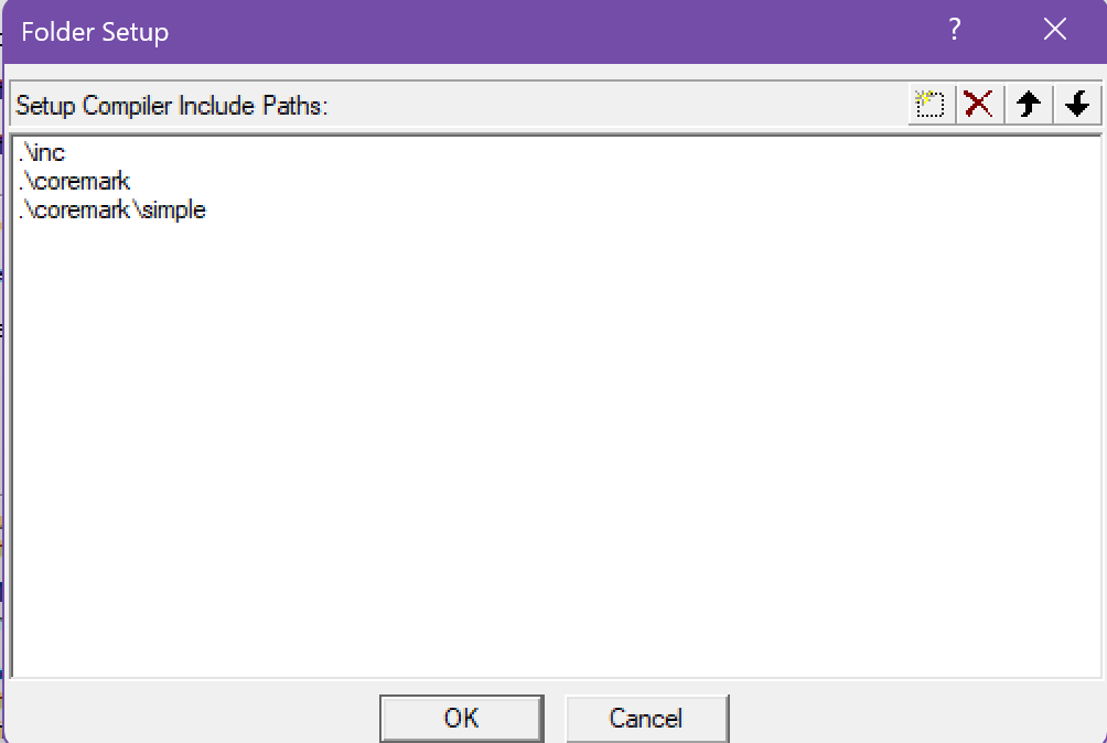 在工程中,加入如下几个文件:core_list_join.c core_main.c core_matrix.c core_state.c core_util.c ssimple/core_portme.c,不要忘记把添加 include 路径