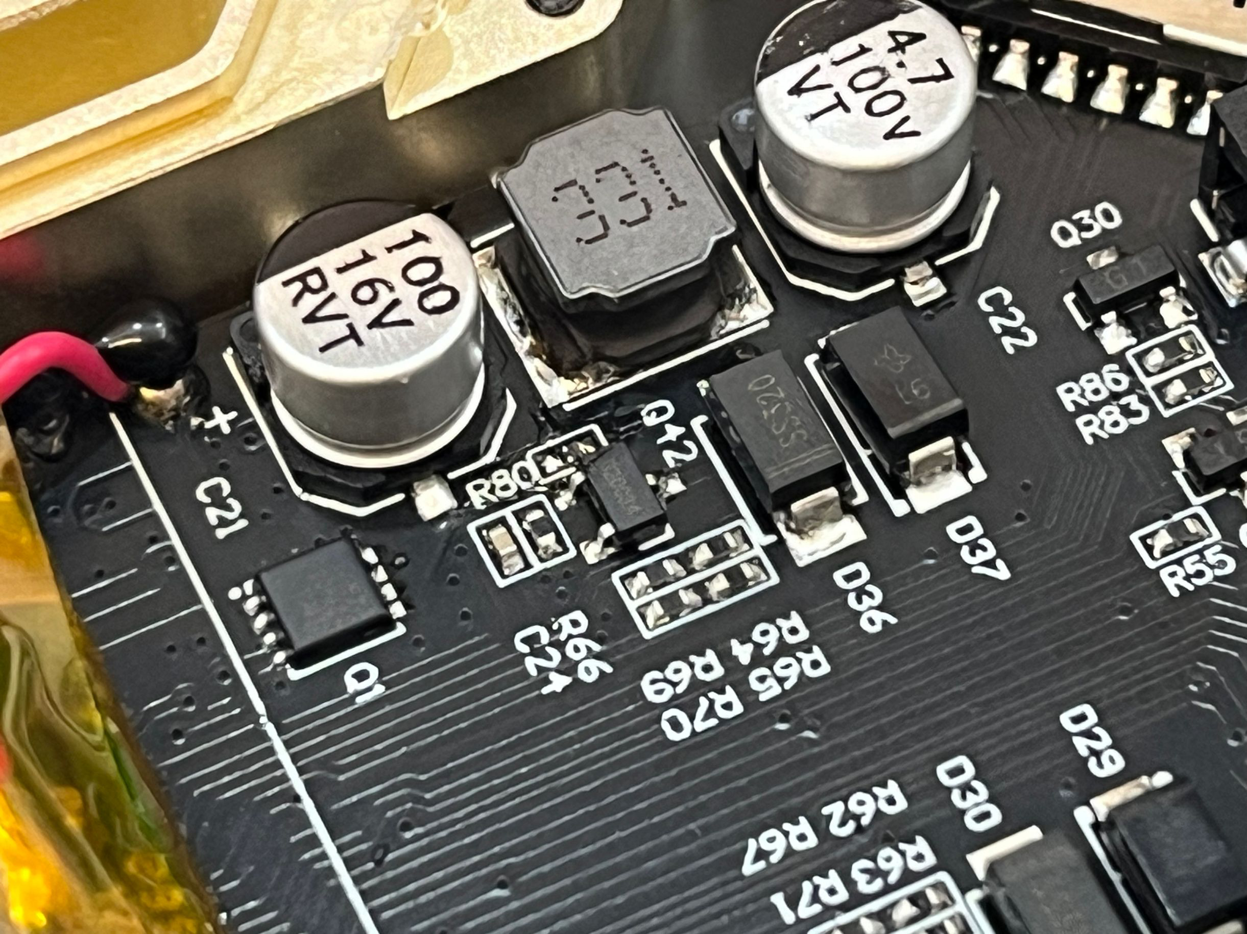 在一些比较关键的元件上,甚至有一些缩水,比如最高的输出电压,以及升压电感和电容。在第二代上存在一个问题,长时间使用之后升压部分会变得非常热,并且甚至可能会烫伤用户,在第三代中这个问题势必会变得更严重。至于有没有添加诸如 NTC 之类的保护措施,就目前肉眼所见的情况来看,是没有的。不过目前我没有热成像,因此也暂时没法进行长时间的压力测试了,这个以后会补上。