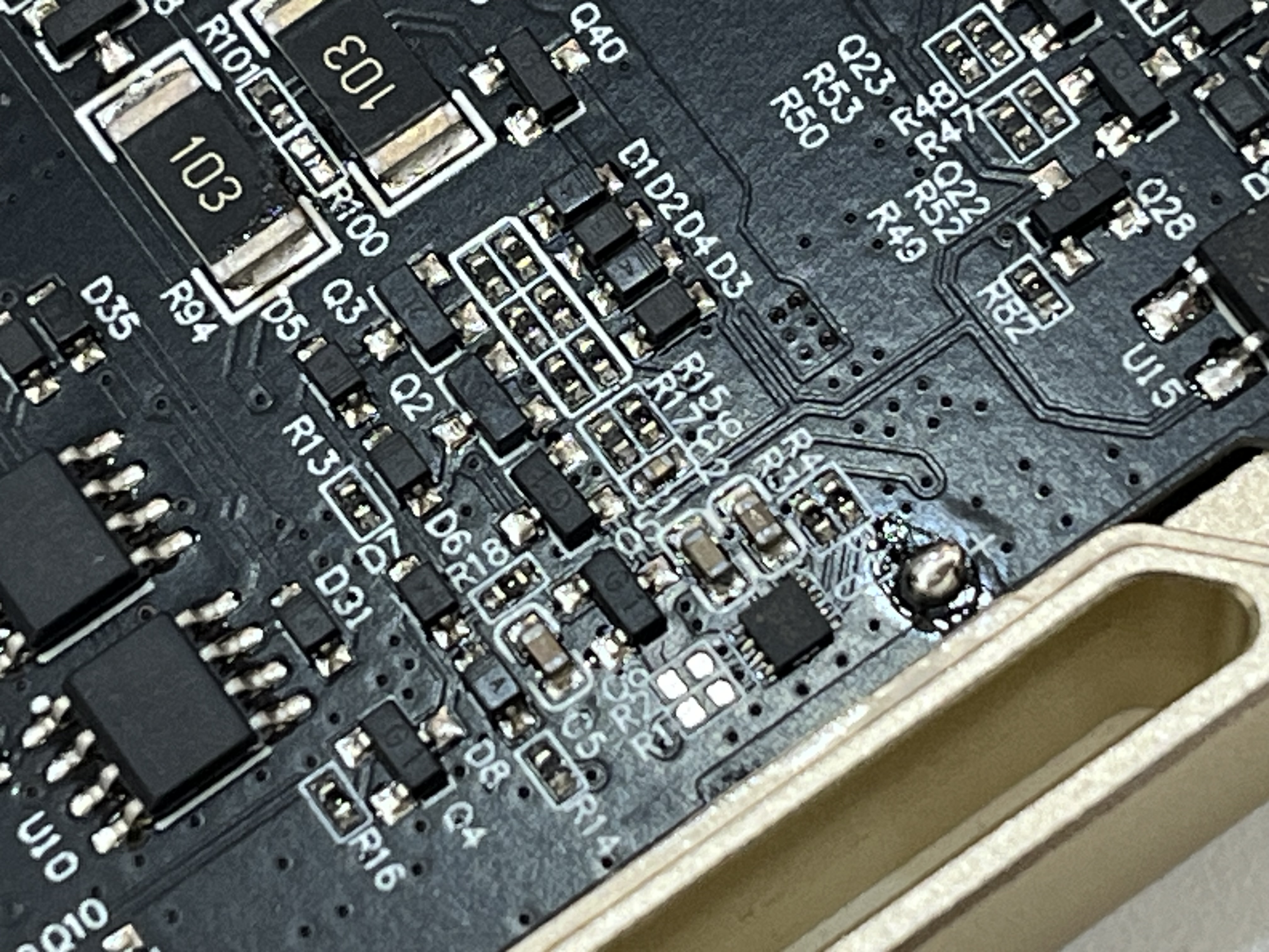 主机端有一个非常有意思的东西,在 PCB 上可以看到有一些二次焊接的痕迹,比如说 R80 这个电阻就被拆掉了,上面的助焊剂甚至都没有清理干净。这样的痕迹也不止一处。
